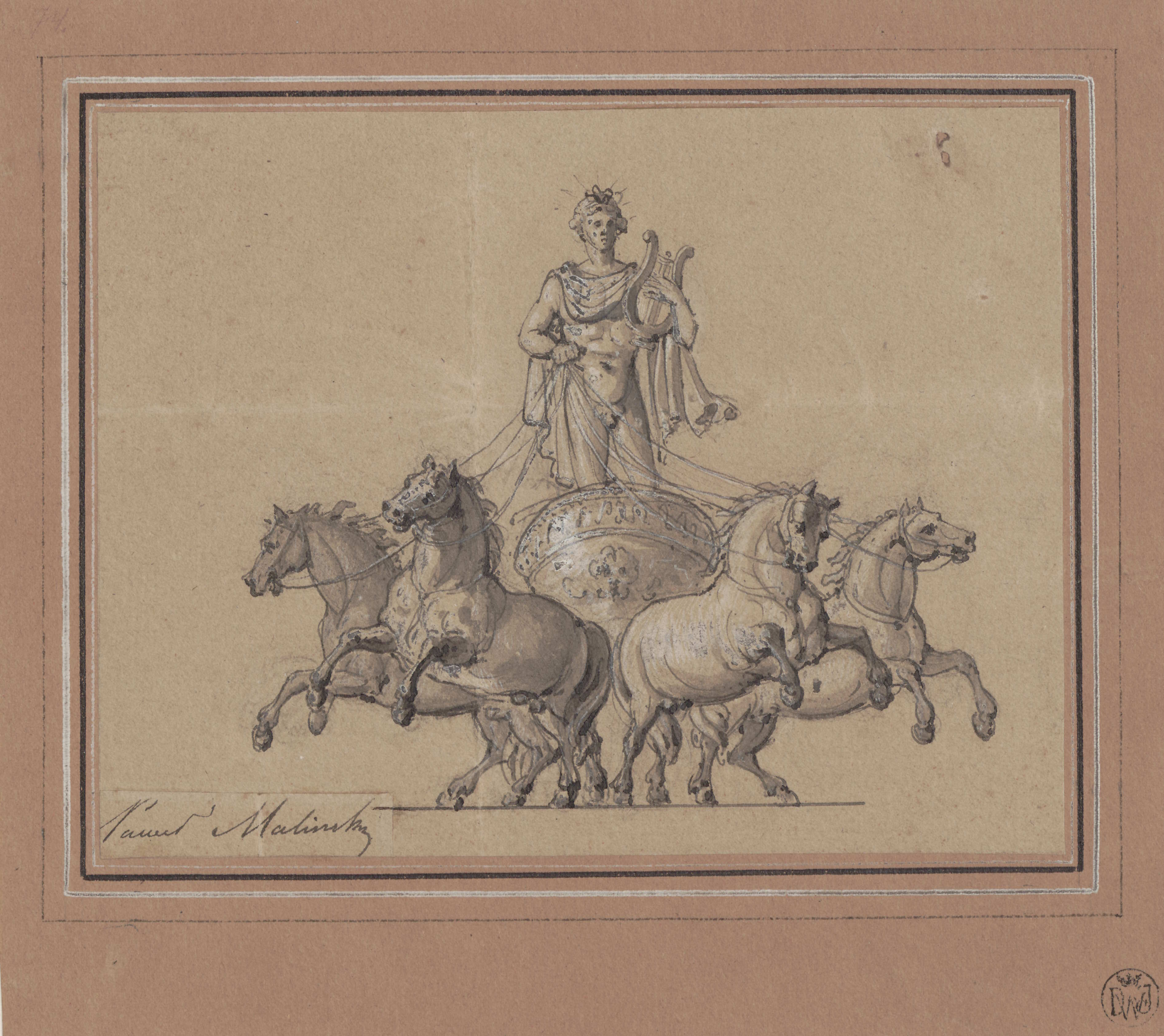 Orkiestra gra uwerturę Beethovena »Na poświęcenie domu« (»Zur Weihung des Hauses«), z ostatniemi jej dźwiękami kurtyna idzie w górę i odsłania scenę zupełnie zaciemnioną; przez mglistą zasłonę widać tylko na wzniesionym ołtarzu dużą płonącą czarę ofiarniczą; po chwili nad ołtarzem zjawia się Muza, oświetlona z góry rzuconym blaskiem, tak, aby tylko jej biała postać posągowo odbijała na ciemnem tle dekoracyi) -