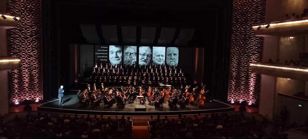 – Krzysztof Penderecki – mistrz, wielka postać polskiej i światowej kultury. Jego dzieło stanowi jedno z głównych ogniw naszego dziedzictwa narodowego. Wybitny pedagog, wieloletni rektor Akademii Muzycznej w Krakowie, która dziś nosi jego imię. Wszystkie opery Krzysztofa miały swoje realizacje na naszej scenie. Ostatnia, „Czarna maska”, była wielkim wydarzeniem kończącego się właśnie sezonu – zaznaczył Dyrektor TW-ON, pozdrawiając przybyłą na koncert Elżbietę Penderecką.