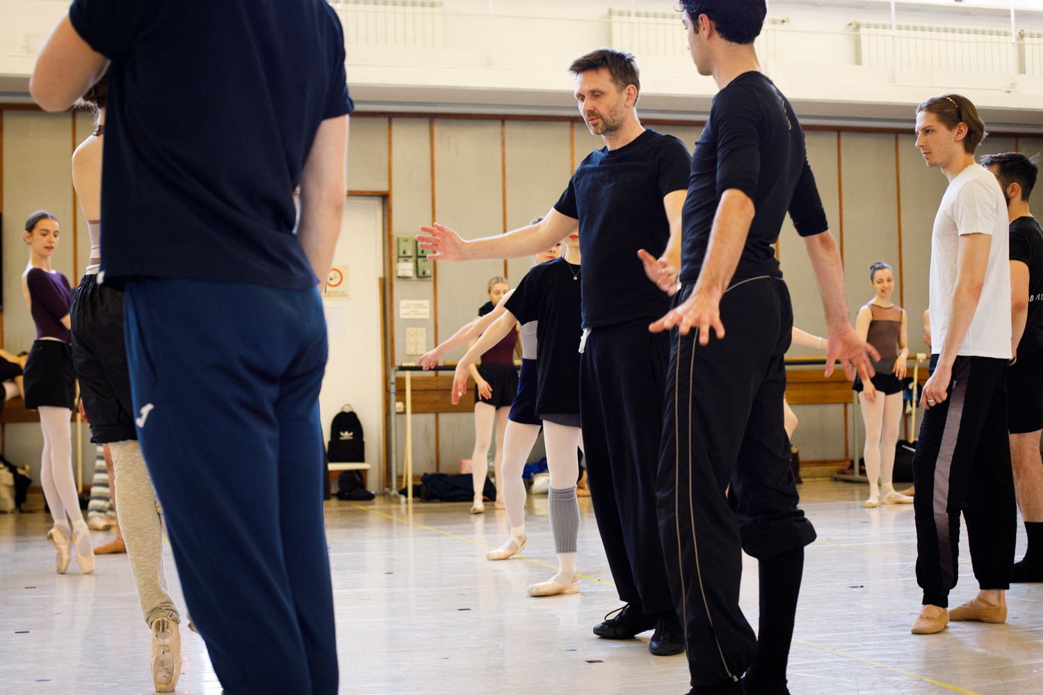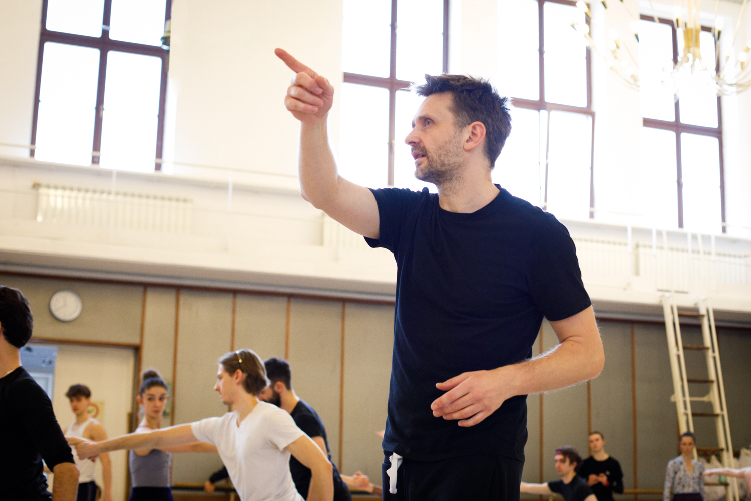 - Robert Bondara podczas pracy z zespołem Polskiego Baletu Narodowego, fot. Ewa Krasucka