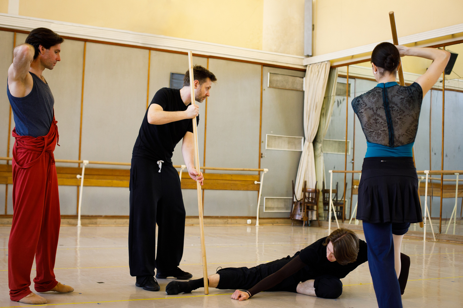 - Robert Bondara, Vladimir Yaroshenko, Paweł Dobrzyński i Julia Alvarez podczas próby, fot. Ewa Krasucka